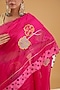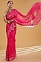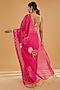 Featuring a hot pink saree in kota silk base with applique work and print. It is paired with a green dupion unstitched blouse piece. Perfect wear for festive occasions or wedding ceremony.