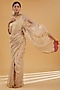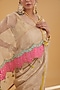 Featuring an ivory golden saree in tissue base with border embroidery. It is paired with a silk tissue hand embroidered unstitched blouse piece. Perfect wear for festive occasions or wedding ceremony.