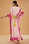 Featuring a nude pink kaftan in crepe base with print and hand embroidery, including back tie belt and fringes on hemline. Perfect wear for any occasions.