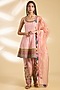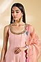 Featuring a pastel pink short anarkali in silk tissue and tissue organza base with hand embroidery. It is paired with silk tissue embroidered salwar and a scalloped dupatta. Style it with dangler earrings, cuff, and mojaris for a wedding or festive occasion.