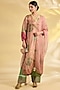 Featuring a pink kurta in tissue silk and modal satin base with floral print and hand embroidery. It is paired with palazzo pants and an organza dupatta. Accentuate it with statement earrings and heels for any festive occasion, wedding or engagement ceremony.