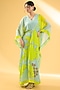 Powder Blue & Bright Green Crepe Floral Motif Hand Embroidered Kaftan Dress