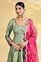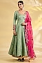Featuring a powder blue anarkali in tissue silk base with print and hand embroidery. It is paired with a hot pink organza boota resham work dupatta. Accentuate it with statement earrings and heels for any festive occasion, wedding or engagement ceremony.