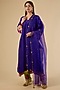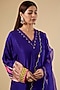 Featuring a purple striped kaftan in silk and modal satin base with hand embroidery. It is paired with pants and an organza dupatta. Accentuate it with dangler earrings and heels for a festive occasion, pooja ceremony or family gathering.