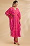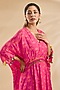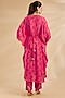 Featuring a magenta kaftan in cotton silk base with print, hand embroidered waist belt, back tie belt and tassel detail. It is paired with applique embroidered pants. Accentuate it with statement earrings and embellished flats for a chic yet comfortable look, ideal for festive brunches, casual gatherings or daytime celebrations.