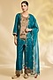 Featuring a teal blue short kurta in silk and organza base with hand embroidery. It is paired with palazzo pants and a dupatta. Accentuate with statement earrings and heels for a festive occasion.