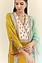 Featuring a yellow kurta in crepe, modal satin and organza base with hand embroidery. It is paired with pants and a dupatta. Accentuate it with statement earrings and block heels for a festive occasion, sangeet or engagement ceremony.
