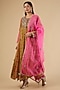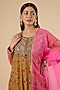 Featuring a yellow phulkari anarkali in crepe and modal satin base with print. It is paired with palazzo pants and an organza dupatta. Accentuate it with dangler earrings and heels for a festive occasion, pooja ceremony or family gathering.