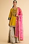 Featuring a yellow kurta in silk base with hand embroidery. It is paired with tissue silk embroidered gharara and a bright pink organza dupatta. Accentuate it with statement jewellery and heels for festive occasions.