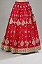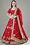 Featuring a red lehenga in pure raw silk base with marodi hand embroidery. It is paired with a matching blouse and a pure georgette dupatta.