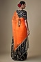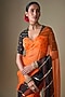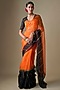 Featuring a black and orange saree in pure silk organza base with tikki hand embroidery. It is paired with an unstitched blouse. Pair with statement gold jewelry and heels for weddings, festive events, evening parties, or receptions.