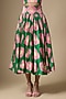 Featuring a green and pink skirt in pure satin silk base with floral print. It is paired with a corset top. Accentuate it with minimal jewellery and elegant heels for a refined ensemble, ideal for cocktail evenings or art-inspired events.
