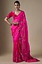 Featuring a hot pink saree in pure silk organza and velvet base with hand embroidery. It is paired with a blouse piece. Accentuate it with statement jewellery and heels for weddings or sangeet ceremonies.