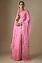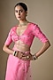Featuring a light pink saree in pure silk organza base with jaal pattern and pitta hand embroidery. It is paired with a boota embroidered unstitched blouse and a dupatta. Perfect for daytime weddings, festive celebrations, engagements, and family gatherings. Pair with pearl or rose gold jewelry and nude heels for a graceful look.