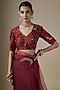 Featuring a maroon saree in pure silk organza base with hand embroidery. It is paired with a blouse piece. Accentuate it with statement jewellery and heels for weddings or sangeet ceremonies.