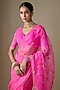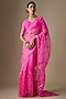 Neon Pink Silk Organza Jaal Hand Embroidered Saree Set