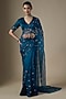 Featuring a peacock blue saree in pure silk organza base with hand embroidery. It is paired with a blouse piece. Accentuate it with statement jewellery and heels for weddings or sangeet ceremonies.
