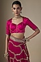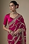 Featuring a pink saree in georgette base with hand embroidery. It is paired with a blouse piece. Accentuate it with statement jewellery and heels for weddings or sangeet ceremonies.