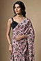 Featuring a pink and green saree in pure crepe base with print. It is paired with an unstitched blouse piece. Accentuate it with sleek gold jewellery and elegant heels for a refined ensemble, ideal for cocktail evenings, art-inspired events or elegant dinner gatherings.