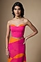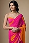 Featuring a pink and orange saree in georgette base with abstract print. It is paired with an unstitched blouse piece. Accentuate it with sleek gold jewellery and elegant heels for a refined ensemble, ideal for art-inspired events or festive gatherings.