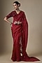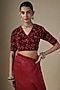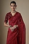 Featuring a red saree in pure silk organza base with embroidery. It is paired with an embroidered blouse piece. Accentuate it with statement jewellery and heels for weddings or sangeet ceremonies.