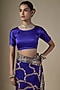 Featuring a royal blue saree in pure silk organza base with hand embroidery. It is paired with a blouse piece. Accentuate it with statement jewellery and heels for weddings or sangeet ceremonies.
