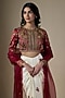 Featuring a white draped skirt in pure satin silk base with embroidery. It is paired with an embroidered blouse and an organza dupatta. Accentuate it with diamond jewellery and heels for a cocktail, sangeet or engagement ceremony.