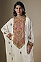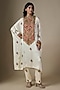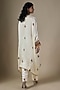 Featuring a white kaftan in pure satin silk base with print and embroidery. It is paired with pants. Accentuate it with block heels and statement earrings for festive ceremonies.