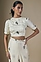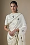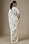 Featuring a white saree in pure soft organza base with floral print. It is paired with an unstitched blouse piece. Accentuate it with sleek metallic jewellery and elegant heels for a refined ensemble, ideal for cocktail evenings, art-inspired events or elegant dinner gatherings.