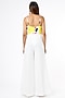 Featuring a multi-coloured cowl top in a satin base with print. It is paired with contrasting white volvo wide-leg pants.