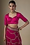 Featuring a wine-cropped blazer in suiting base with floral motifs and tikki hand embroidery. It is paired with flared pants. Accentuate it with pointed heels and minimal statement jewellery for a power-chic ensemble, ideal for work events, evening socials or stylish city outings.