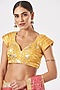 Featuring a citrus yellow and rose pink pre-pleated saree in georgette base with sequins embroidery. It is paired with a matching blouse having a deep V neckline, back strings, gold gota edges, and handmade latkans.