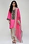 Featuring a fuchsia dogri kurta in silk wrinkled texture base. It is paired with almond dhoti salwar pants and a silk organza dupatta. Accentuate it with jewellery, a clutch and block heels for festive occasions or wedding ceremonies.