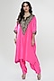 Featuring a fuchsia kaftan in wrinkled silk base. It is paired with dhoti salwar pants. Accentuate it with jewellery, a clutch and block heels for festive occasions or wedding ceremonies.