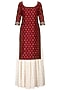 Featuring a wine long kurta in silk base with hand embroidery. It is paired with matching organza dupatta and ivory skirt.