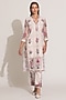 Featuring a beige tunic in cotton linen stripe base with floral embroidery, thread work and a V-neckline. It is paired with pants. Accentuate it with statement jewellery and heels for a festive ceremony.
