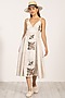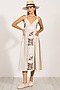 Beige Poly Flex Cross-Stitch Embroidered Midi Dress