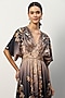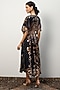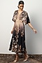 Featuring a black draped dress in dull satin base with cardinal print. Style it with dangler earrings and heels for a complete look.