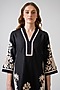 Featuring a blue tunic in viscose linen base with print and embroidery. Accentuate with pants, statement earrings and heels for an evening look.