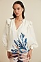 Featuring an ivory top in linen base with bishop sleeves and ombre threadwork. This contains one piece only.
