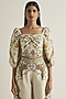 Featuring a multi-colored cropped top in viscose linen base with smocking details, parrot print and an overlapped tie-up knot. This contains only one piece.