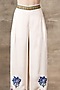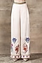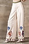 Featuring snow white wide-leg pants in satin base with print and floral detailing. Style it with a top, dangler earrings and heels for a complete look.