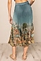 Featuring a teal blue skirt in poly satin base with print. Accentuate it with a top, statement jewellery and heels for a complete look.