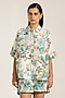 Teal Linen Viscose Blend Printed Shirt