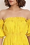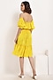Featuring a sunrise yellow mist dress in viscose georgette base with cold-shoulder sleeves.