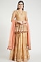 Featuring a beige lehenga in chanderi base with woven, badla, mayur and aari hand embroidery. It is paired with an organza peplum blouse and a dupatta.