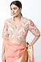 Featuring a blush pink saree in silk, cotton, and organza base with sequins and dori hand embroidery. It is paired with a matching blouse.