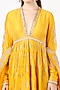 Featuring a dandelion yellow anarkali in handloom chanderi and silk cotton base with hand embroidery. It is paired with matching pants and a dupatta.