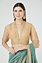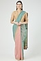 Featuring a multi-colored saree in handloom chanderi and organza base with woven dori hand embroidery. It is paired with a blouse. Accentuate with statement earrings and heels for a festive occasion or engagement ceremony.