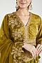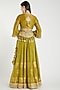 Featuring an olive green lehenga in chanderi base with woven, floral and dori hand embroidery. It is paired with a matching blouse and a cutwork embroidered dupatta.